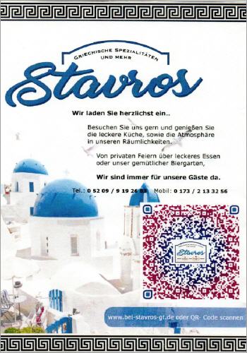 Wir freuen uns sehr auf Ihren Besuch und allzeit einen guten Appetit wünschen Ihnen Christiane & Stavros Stamatis, sowie Christos Galazoulas und das gesamte Team des Restaurants "BEI STAVROS".