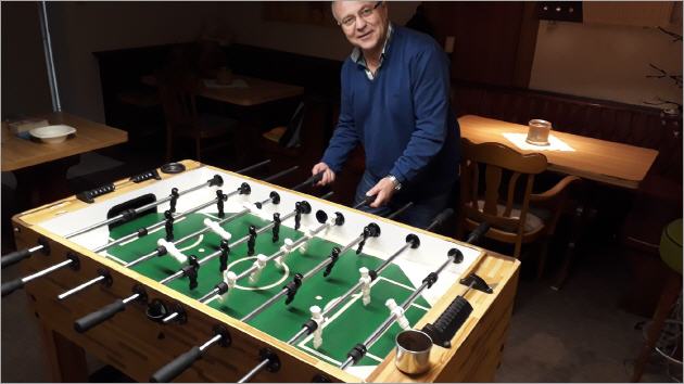 Wenn die sportlichen Diskussionen nicht hitzig genug sind, kann der Wettbewerb auch im separaten Kickerraum erweitert werden.